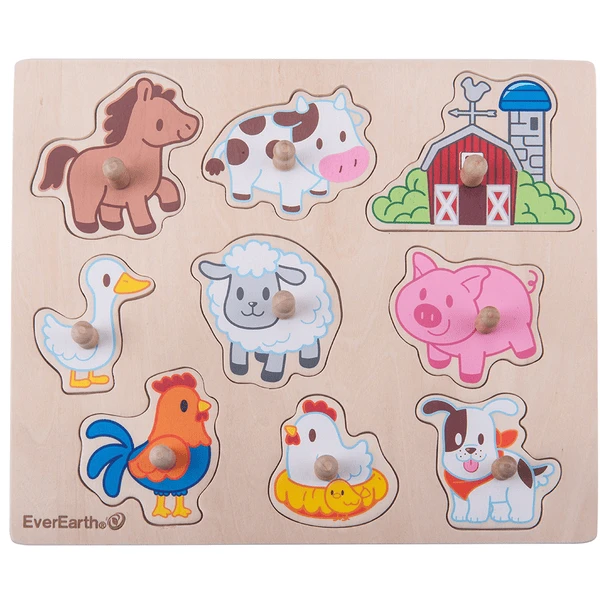 Unsere Puzzle „Bauernhof“ fördert die Entwicklung der Hand-Augen-Koordination und helfen den Kindern dabei, unterschiedliche Formen und Tiere erkennen zu lernen. Kompakte Holzstücke mit gut greifbaren Stiften sind ideal. Die Kinder können sie leicht greifen und die Formen an die richtigen Stellen setzen. Das Produkt aus qualitativ hochwertigem Birkenholz ist vollständig nach europäischen Standards getestet und eignet sich für Kinder ab 24 Monaten. Zudem ist das Birkenholz zu 100 % FSC-zertifiziert und wurde nach EN71-Standards getestet. Damit ist die Sicherheit und Haltbarkeit des Produkts beim Spielen sichergestellt.