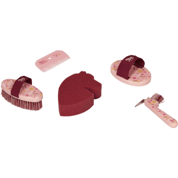 Wunderschönes, fünfteiliges Pferdeputzzeug in praktischer Aufbewahrungsbox. Enthalten sind ein